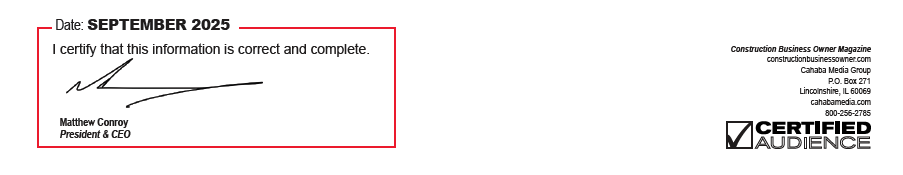 This audience report details digital activities for Construction Business Owner. This report is produced quarterly to provide certified data that is current and accurate, consistent with the integrity of the publisher’s delivery and reporting protocols and disciplines.The publisher collects specific demographic detail for each individual recipient, and representative demographics reported herein are based on an aggregate of magazine subscribers, eNewsletter subscribers and those active in the industry.